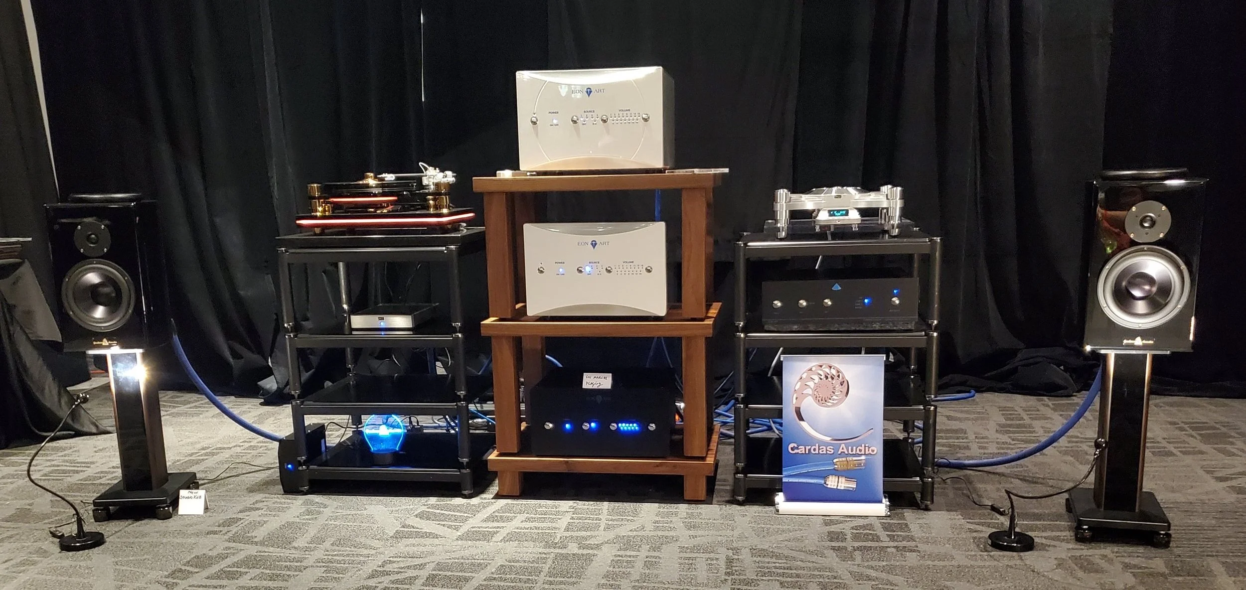 The Gershman/EON room for its assemblage of components was rather impressive. The Gershman/EON system was composed of the EON Boson Integrated Mono Amplifier, the EON Tachyon DAC, the Oracle Delphi MkVI Signature turntable, the Oracle CD2500 MkIV CD player, and the new Gershman Studio XdB monitor.