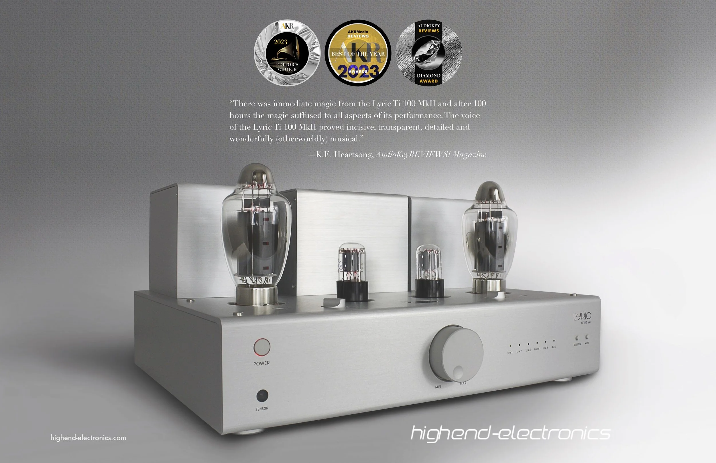 Lyric Audio Ti 100 MkII: There was immediate magic from the Ti 100 MkII, though this was purely from a musical perspective, which was immersive in the extreme. However, after about 100 hours the magic suffused to all aspects of the Lyric Ti 100 MkII’s performance. This was easily witnessed, as it followed an exceptional pair of 200 watt/channel, solid state monoblock amplifiers with dedicated preamplifier with relatively minor lessening in overall performance. Remarkable! Twenty watt SET integrated amps don’t move the kind of air or drive the bass the way the Lyric Ti 100 MkII does. Or, at least, they’re not supposed to. Incredibly musical(!), transparent, resolving, detailed, and powerful (especially at its rated 20 watts!). MSRP $9,995