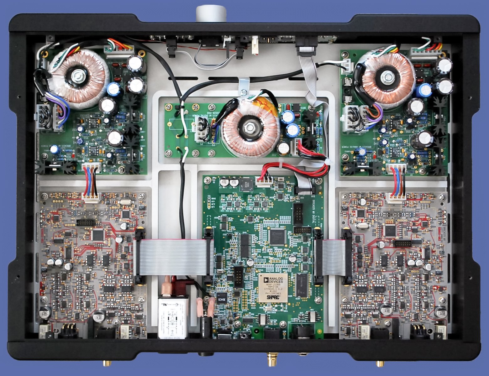 Inside this box one finds an inner, standard, nondescript box that holds, securely, the M1SE DAC. Within this box the M1SE DAC and its remote control are surrounded and protected by various slabs of thick, gray foam.