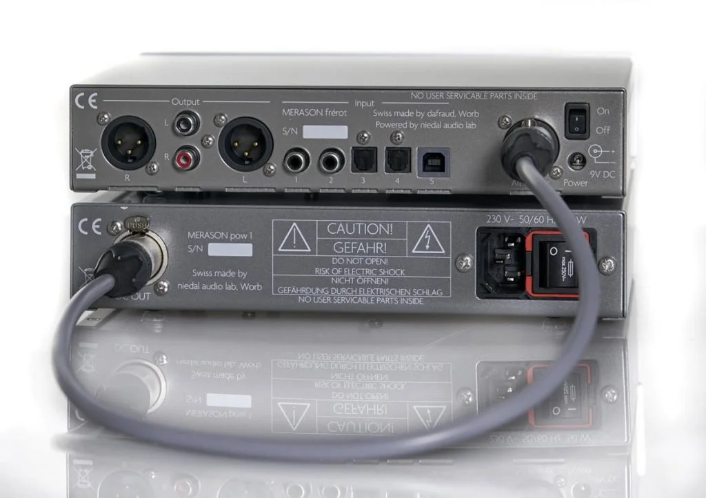 Some DACs or Digital–to–Analog Converters allow you to dive deeply into their digital heart. The owner may decide to try different anti–image filter topologies‡ or to choose a solid or hollow state input stage. Choice is good…up to a point. Increased numbers of possibilities increases the amount of time it takes for someone to reach a decision. Welcome to Hick’s Law, where more options increase the time required to make a choice. With the Merason frérot, one need not worry. Its designer, Swiss engineer Daniel Frauchiger and founder of both Merason and OEM consultancy Niedal Audio Lab, believes that your ears, not specs, should be the final arbiter, and the old ways are best even when dealing with digital. His two piece, mid–priced frérot DAC plus pow1 external power supply are as free of clutter as they are of features. The frérot has two front panel LED indicators, one for power and another for input lock. The only other fascia property is a four–position rotary input selector. That’s it, Doctor Hicks. No information overload here.