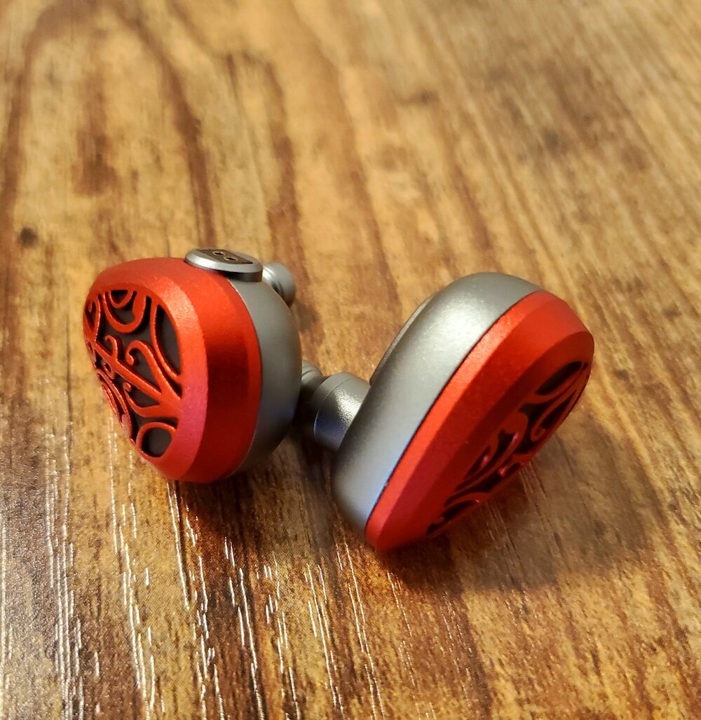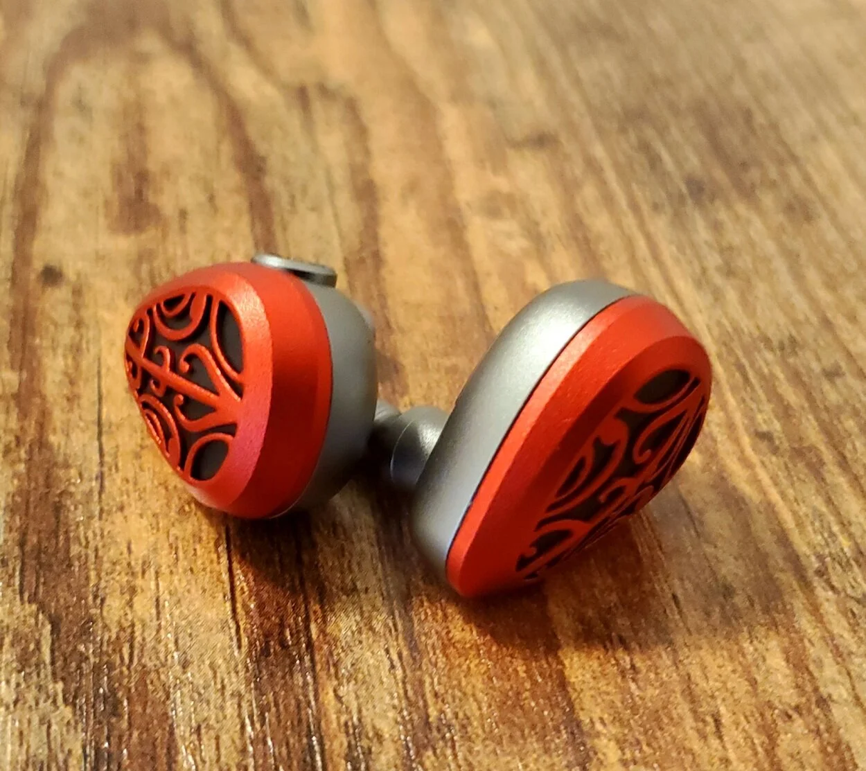 The faceplate of the GáeBolg is designed in a beautifully rich, red pattern that could be one’s family crest’s, a crest of nobility or, perhaps, of anti-nobility. It is, nonetheless eye-catching, exceptionally well executed, of a size that will fit comfortably into many, if not most ears, and it will also catch the eyes of many a passerby.